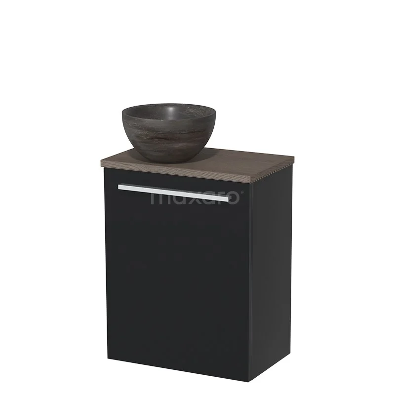 WC-Möbel mit Aufsatzwaschbecken | 41 cm Matt Schwarz Glatte Front Blaustein Naturstein Aufsatzwaschbecken Dunkelbraune Eiche