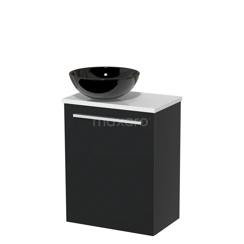 WC-Möbel mit Aufsatzwaschbecken | 41 cm Matt Schwarz Glatte Front Hochglanz Schwarz Aufsatzwaschbecken aus Keramik Hochglanz Weiß