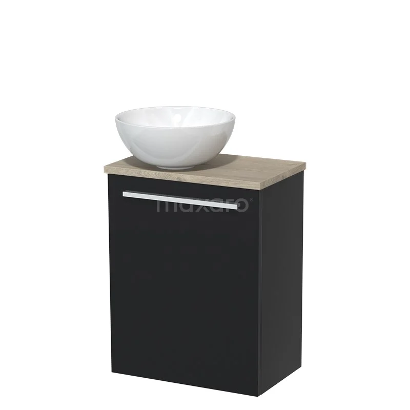 WC-Möbel mit Aufsatzwaschbecken | 41 cm Matt Schwarz Glatte Front Hochglanz Weiß Aufsatzwaschbecken aus Keramik Hellgraue Eiche