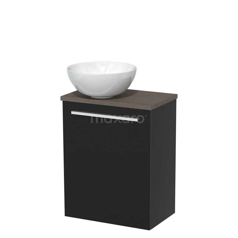 WC-Möbel mit Aufsatzwaschbecken | 41 cm Matt Schwarz Glatte Front Hochglanz Weiß Keramik-Aufsatzwaschbecken Dunkelbraune Eiche Platte