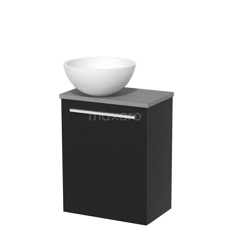 WC-Möbel mit Aufsatzwaschbecken | 41 cm Matt Schwarz Glatte Front Matt Weiß Aufsatzwaschbecken Hellgrauer Beton Platte