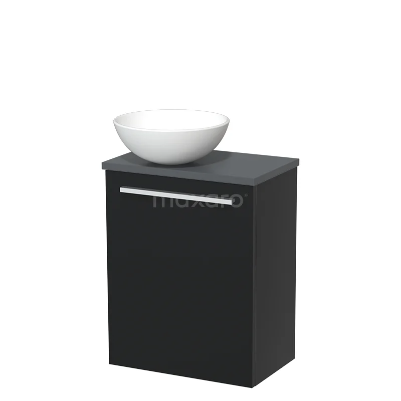 WC-Möbel mit Aufsatzwaschbecken | 41 cm Matt Schwarz Glatte Front Matt Weiß Keramik-Aufsatzwaschbecken Dunkelgrau Platte