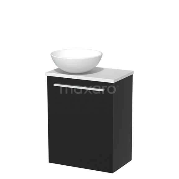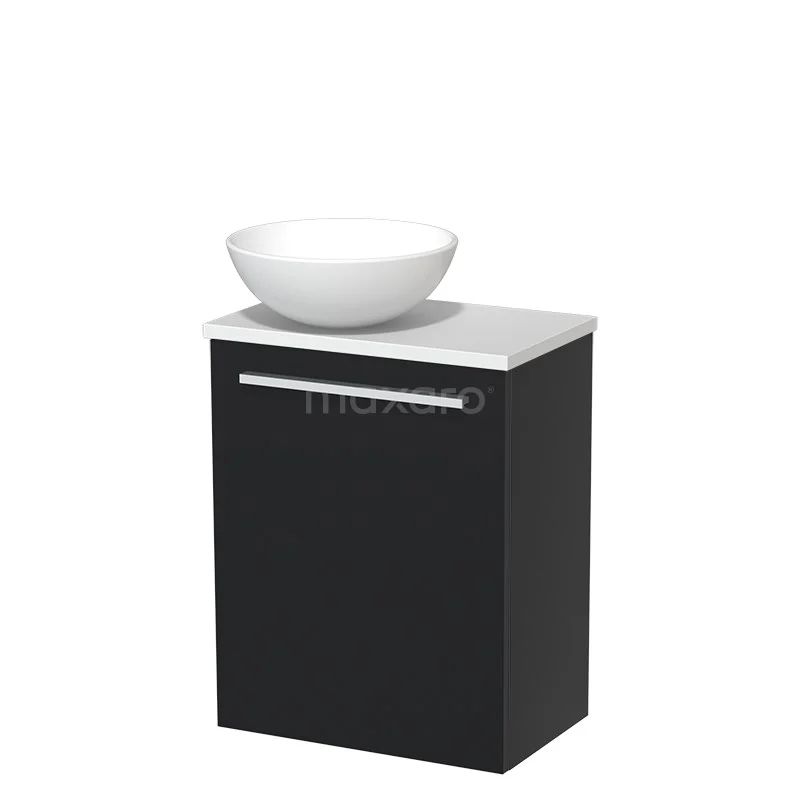 WC-Möbel mit Aufsatzwaschbecken | 41 cm Matt Schwarz Glatte Front Matt Weiß Keramik Aufsatzwaschbecken Matt Weiß Platte