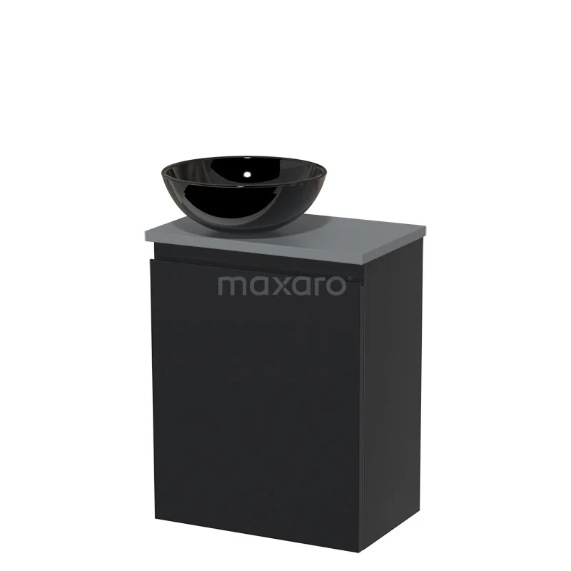 WC-Möbel mit Aufsatzwaschbecken | 41 cm Matt Schwarz Grifflose Front Hochglanz Schwarz Keramik-Aufsatzwaschbecken Mittelgrau Platte