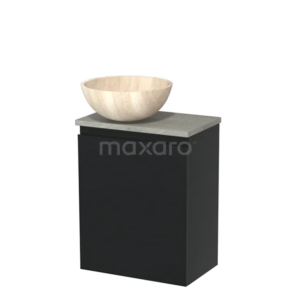 WC-Möbel mit Aufsatzwaschbecken | 41 cm Matt Schwarz Grifflose Front Travertin Naturstein Aufsatzwaschbecken Graue Eiche Platte