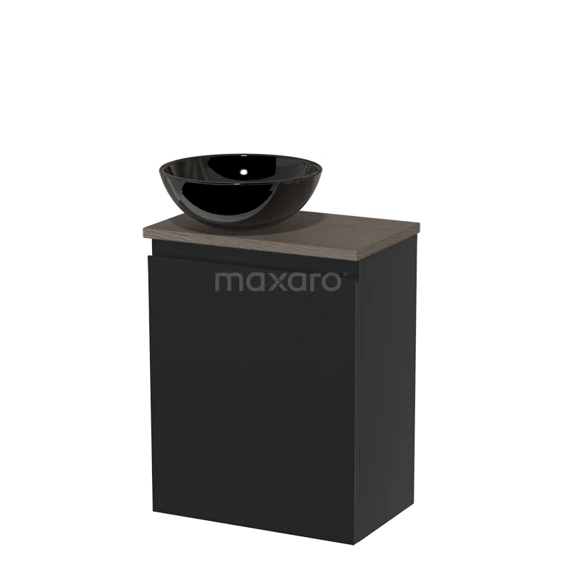 WC-Möbel mit Aufsatzwaschbecken | 41 cm Matt Schwarz Hochglanz Schwarz Front grifflose Front Aufsatzwaschbecken aus Keramik Dunkelbraune Eiche
