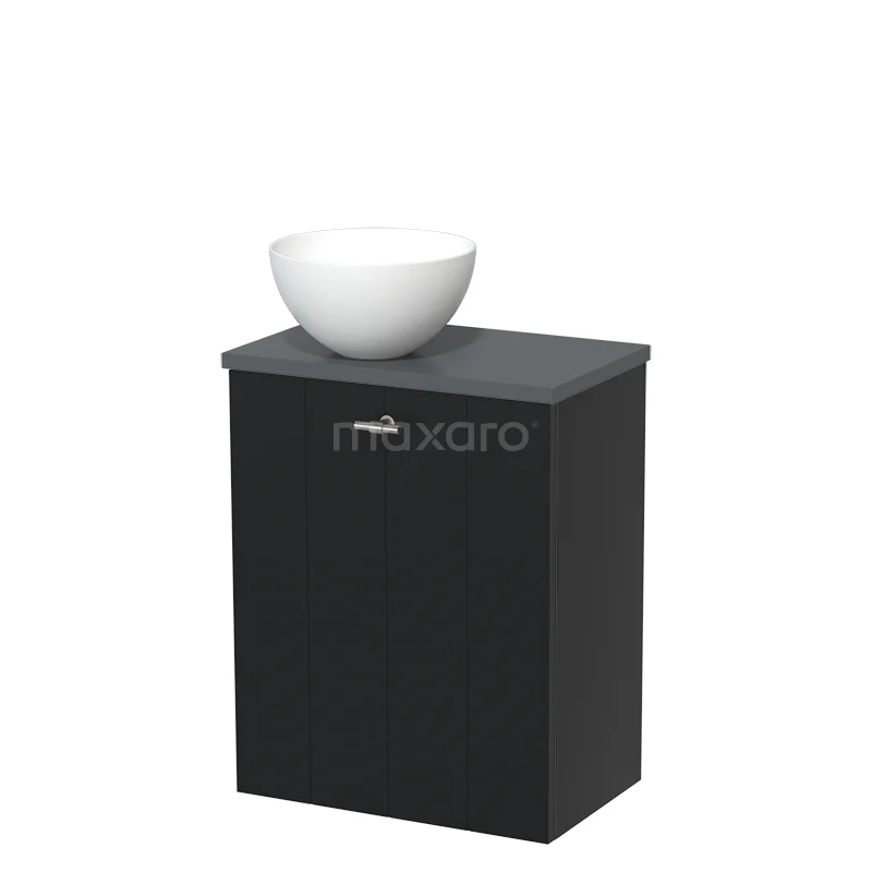 WC-Möbel mit Aufsatzwaschbecken | 41 cm Matt Schwarz Lamellen Front Matt Weiß Solid Surface Aufsatzwaschbecken Dunkelgrau Platte
