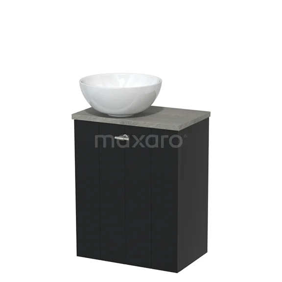 WC-Möbel mit Aufsatzwaschbecken | 41 cm Matt Schwarz Lamellenfront Hochglanz Weiß Keramik-Aufsatzwaschbecken Graue Eiche Platte
