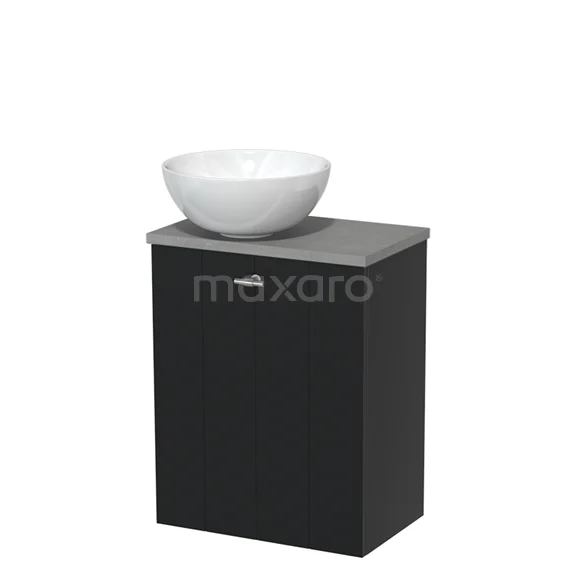 WC-Möbel mit Aufsatzwaschbecken | 41 cm Matt Schwarz Lamellenfront Hochglanz Weiß Keramik-Aufsatzwaschbecken Hellgrauer Beton Platte