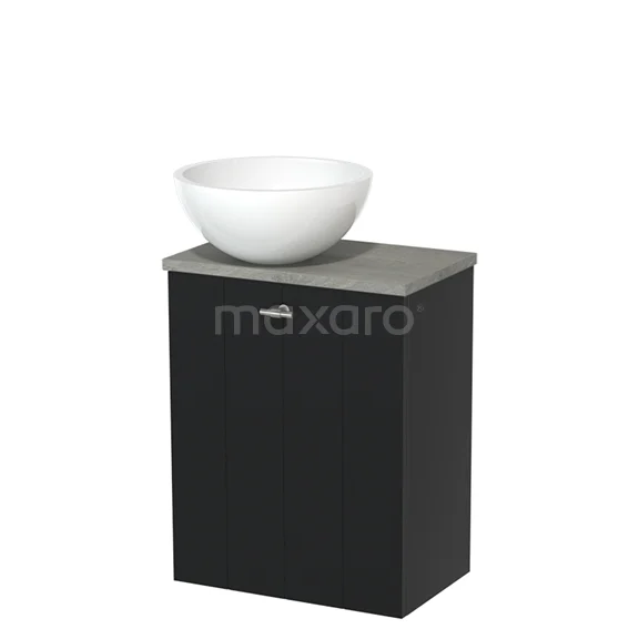 WC-Möbel mit Aufsatzwaschbecken | 41 cm Matt Schwarz Lamellenfront Hochglanz Weiß Mineralguss Aufsatzwaschbecken Graue Eiche Platte