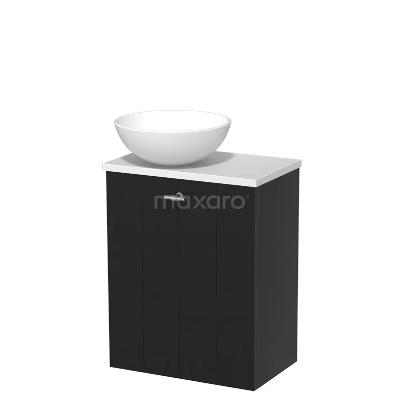 WC-Möbel mit Aufsatzwaschbecken | 41 cm Matt Schwarz Lamellenfront Matt Weiß Keramik-Aufsatzwaschbecken Matt Weiß Platte