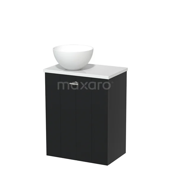WC-Möbel mit Aufsatzwaschbecken | 41 cm Matt Schwarz Lamellenfront Matt Weiß Solid Surface Aufsatzwaschbecken Hochglanz Weiß Platte