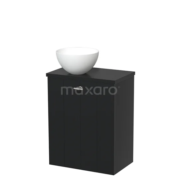WC-Möbel mit Aufsatzwaschbecken | 41 cm Matt Schwarz Lamellenfront Matt Weiß Solid Surface Aufsatzwaschbecken Matt Schwarz Platte