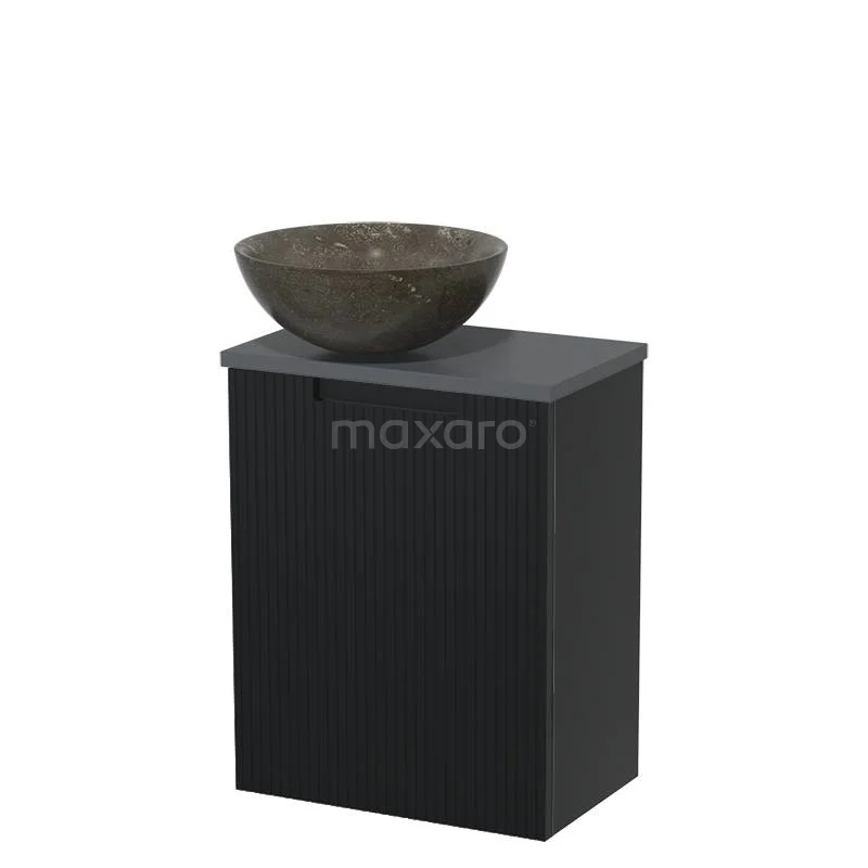 WC-Möbel mit Aufsatzwaschbecken | 41 cm Matt Schwarz Line Front Blaustein Naturstein-Aufsatzwaschbecken Dunkelgrau Platte