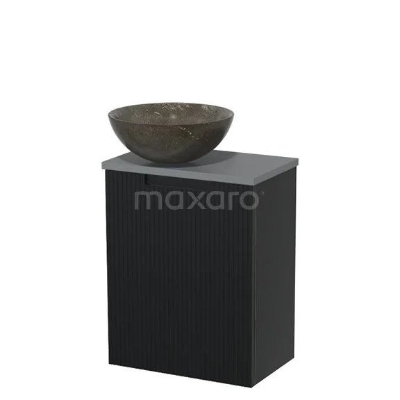 WC-Möbel mit Aufsatzwaschbecken | 41 cm Matt Schwarz Line Front Blaustein Naturstein-Aufsatzwaschbecken Mittelgrau Platte