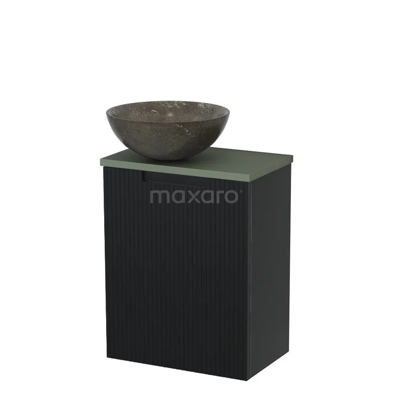 WC-Möbel mit Aufsatzwaschbecken | 41 cm Matt Schwarz Line Front Blaustein Naturstein Aufsatzwaschbecken Salbeigrün