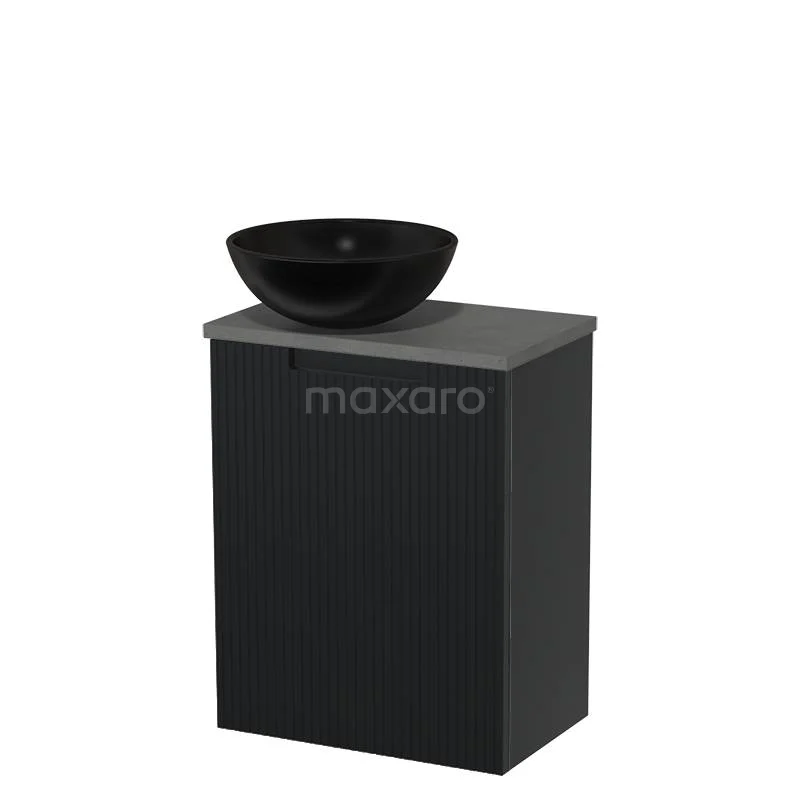 WC-Möbel mit Aufsatzwaschbecken | 41 cm Matt Schwarz Line Front Matt Schwarz Keramik-Aufsatzwaschbecken Dunkelgrauer Beton Platte