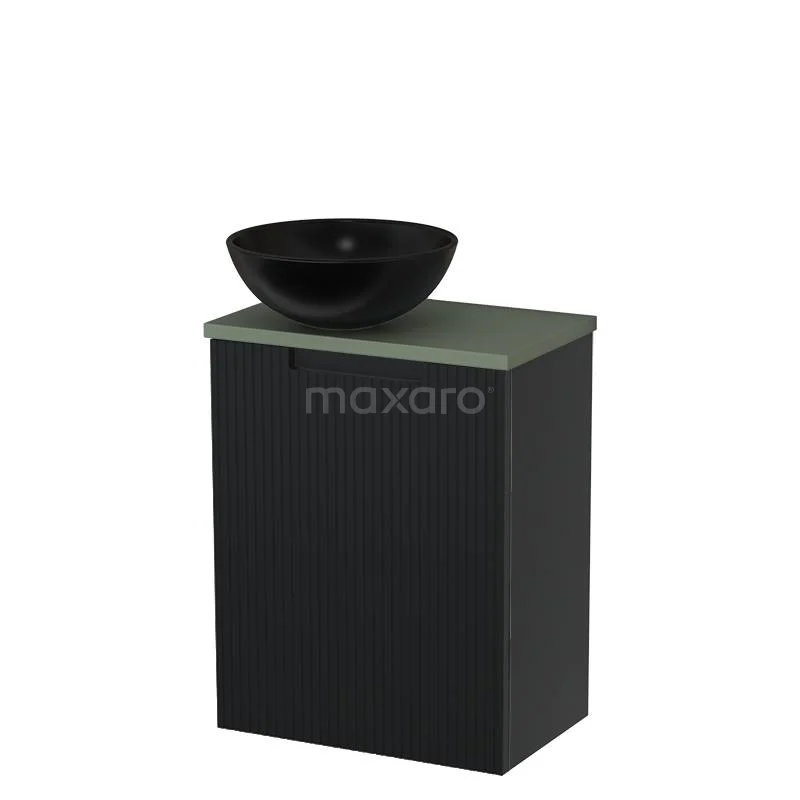 WC-Möbel mit Aufsatzwaschbecken | 41 cm Matt Schwarz Line Front Matt Schwarz Keramik Aufsatzwaschbecken Salbeigrün
