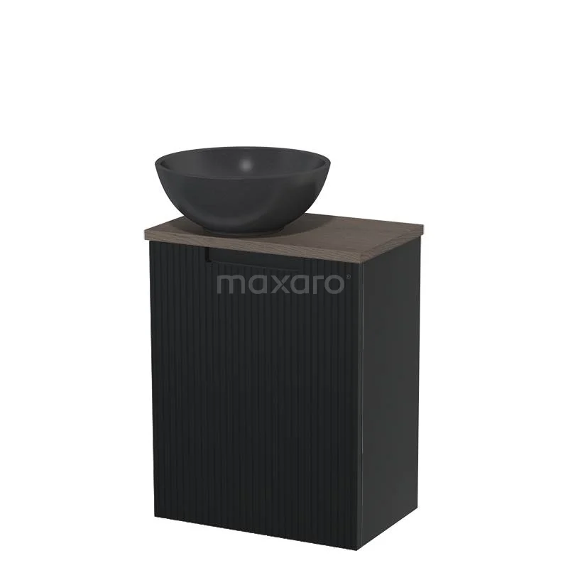 WC-Möbel mit Aufsatzwaschbecken | 41 cm Matt Schwarz Line Front Matt Schwarz Quarz Aufsatzwaschbecken Dunkelbraune Eiche Platte