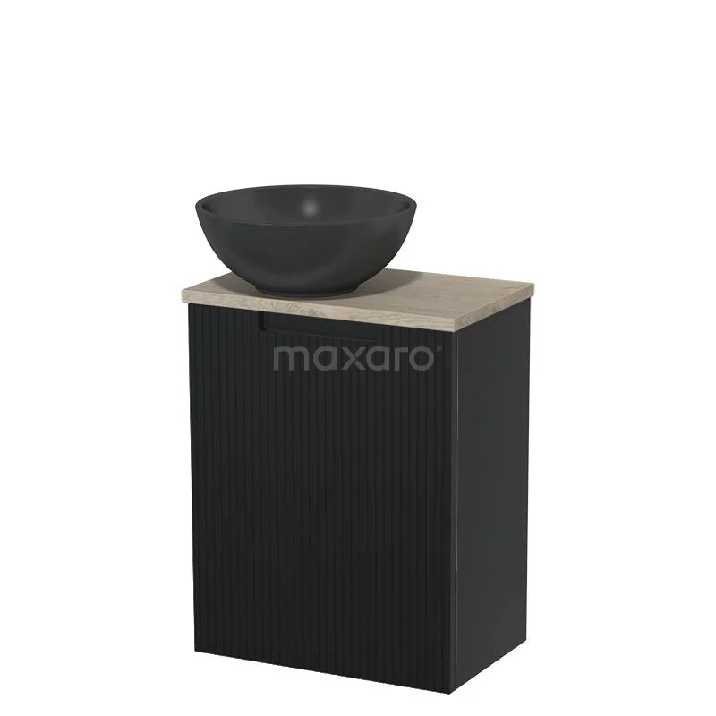 WC-Möbel mit Aufsatzwaschbecken | 41 cm Matt Schwarz Line Front Matt Schwarz Quarz Aufsatzwaschbecken Hellgraue Eiche Platte