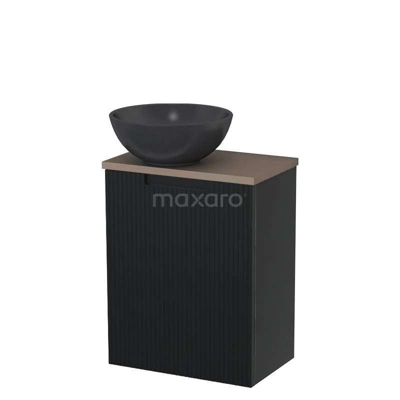 WC-Möbel mit Aufsatzwaschbecken | 41 cm Matt Schwarz Line Front Matt Schwarz Quarz Aufsatzwaschbecken Taupe Platte