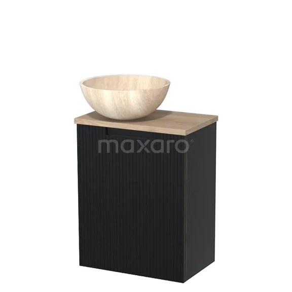 WC-Möbel mit Aufsatzwaschbecken | 41 cm Matt Schwarz Line Front Travertin Becken aus Naturstein Aufsatzwaschbecken aus hellbrauner Eiche