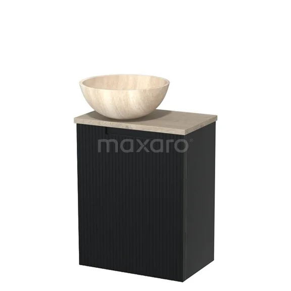 WC-Möbel mit Aufsatzwaschbecken | 41 cm Matt Schwarz Line Front Travertin Naturstein-Aufsatzwaschbecken Hellgraue Eiche Platte
