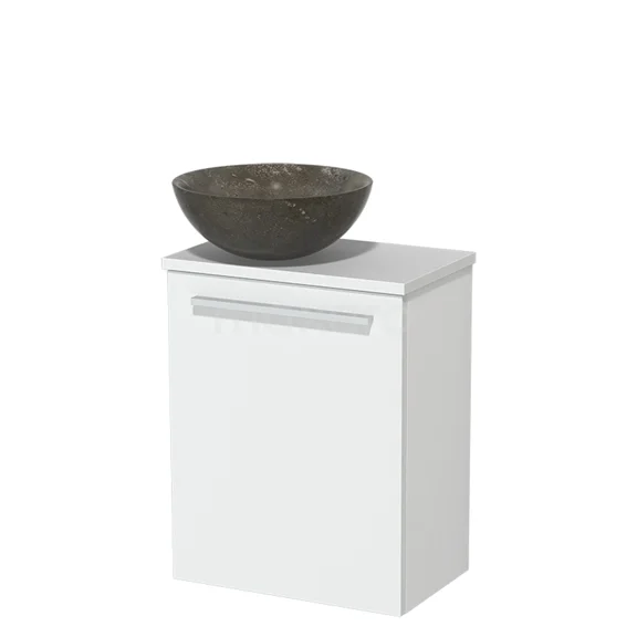 WC-Möbel mit Aufsatzwaschbecken | 41 cm Matt Weiß Glatte Front Blaustein Naturstein Aufsatzwaschbecken Matt Weiß Platte