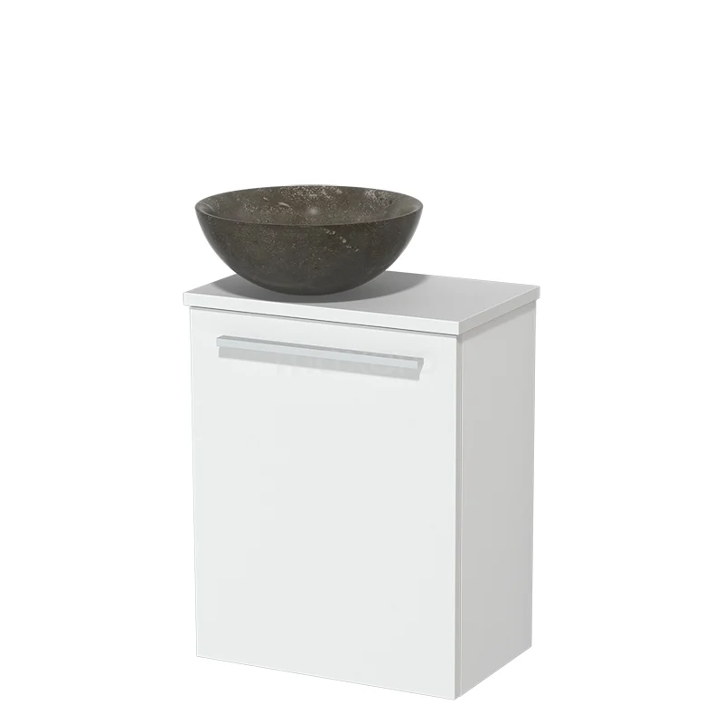 Passendes Aufsatzwaschbecken Der WC-Möbel ist mit einem Aufsatzwaschbecken kombiniert, das Sie entweder links oder rechts aufstellen können. Dieses hat ein rundes Design und ist aus dem Steintyp Blue Stone gefertigt. Das macht das Becken einzigartig und solide. Außerdem hält dieses natürliche Material bei richtiger Pflege ein Leben lang.