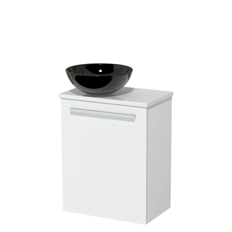 WC-Möbel mit Aufsatzwaschbecken | 41 cm Matt Weiß Glatte Front Hochglanz Schwarz Keramik-Aufsatzwaschbecken Hochglanz Weiß Platte
