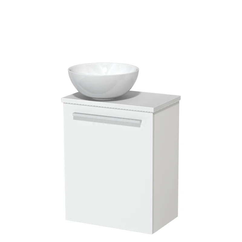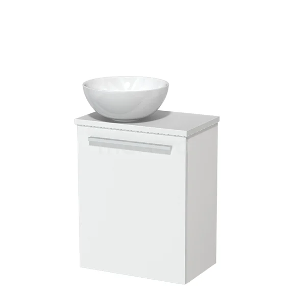 WC-Möbel mit Aufsatzwaschbecken | 41 cm Matt Weiß Glatte Front Hochglanz Weiß Aufsatzwaschbecken aus Keramik Hochglanz Weiß Platte