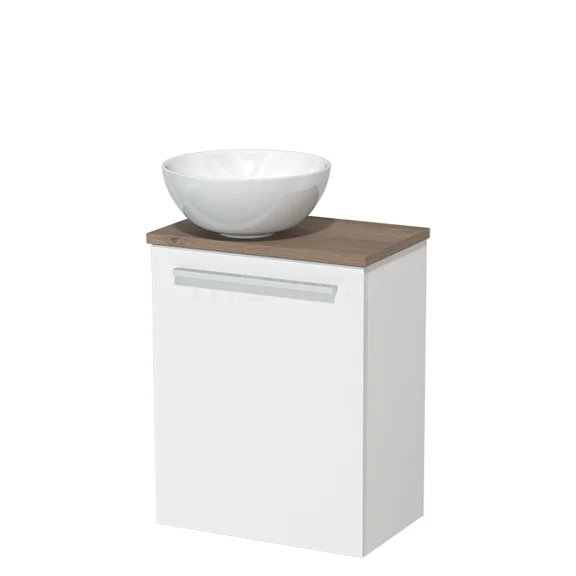 WC-Möbel mit Aufsatzwaschbecken | 41 cm Matt Weiß Glatte Front Hochglanz Weiß Keramik-Aufsatzwaschbecken Mittelbraune Eiche