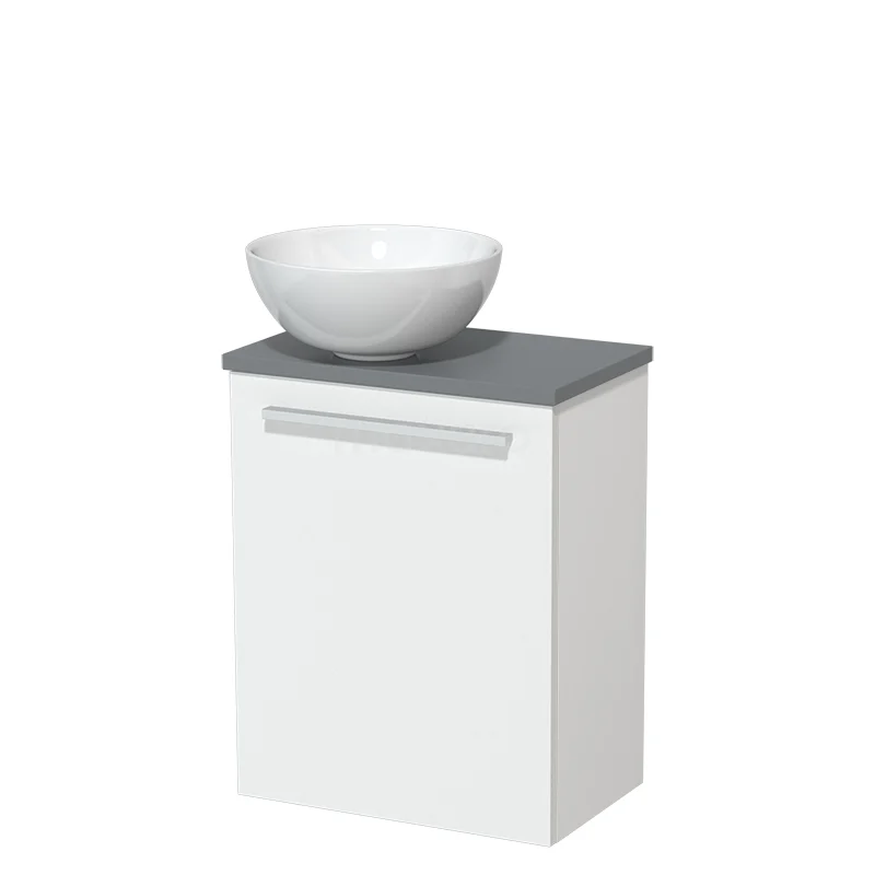 WC-Möbel mit Aufsatzwaschbecken | 41 cm Matt Weiß Glatte Front Hochglanz Weiß Keramik-Aufsatzwaschbecken Mittelgrau Platte