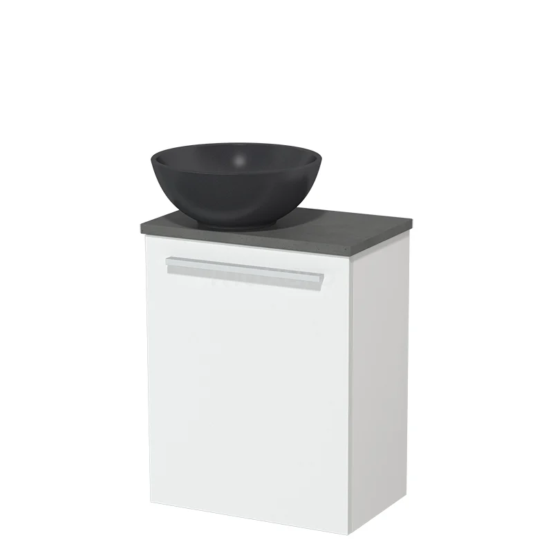 WC-Möbel mit Aufsatzwaschbecken | 41 cm Matt Weiß Glatte Front Matt Schwarz Quarz Aufsatzwaschbecken Dunkelgrauer Beton Platte