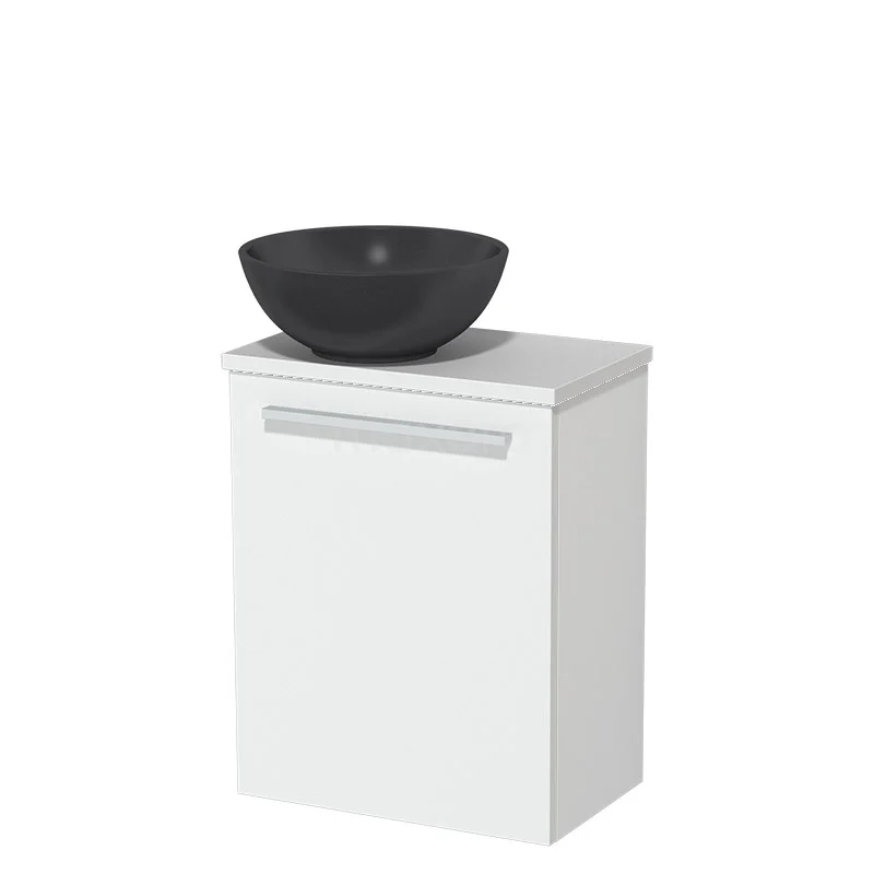 WC-Möbel mit Aufsatzwaschbecken | 41 cm Matt Weiß Glatte Front Matt Schwarz Quarz Aufsatzwaschbecken Matt Weiß Platte