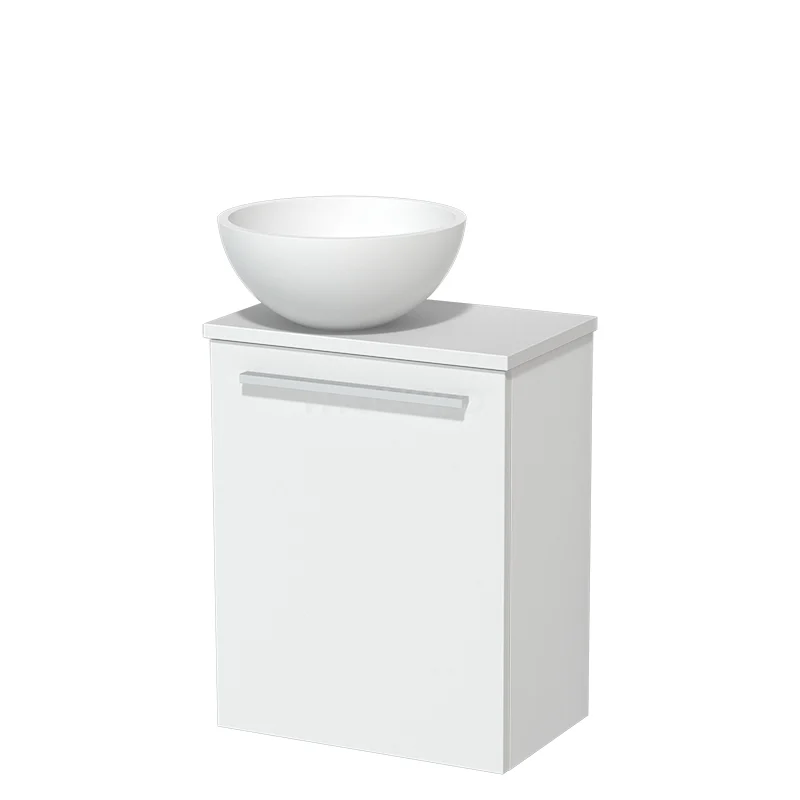 WC-Möbel mit Aufsatzwaschbecken | 41 cm Matt Weiß Glatte Front Matt Weiß Solid Surface Aufsatzwaschbecken Matt Weiße Platte