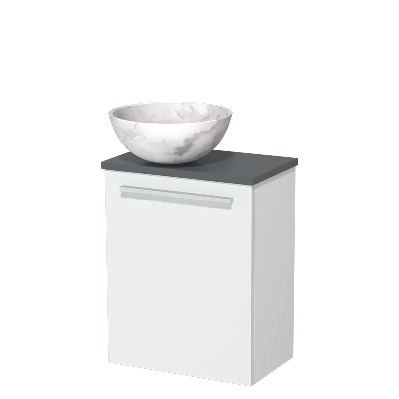 WC-Möbel mit Aufsatzwaschbecken | 41 cm Matt Weiß Glatte Front Weißer Marmor Aufsatzwaschbecken aus Naturstein Dunkelgraue Platte