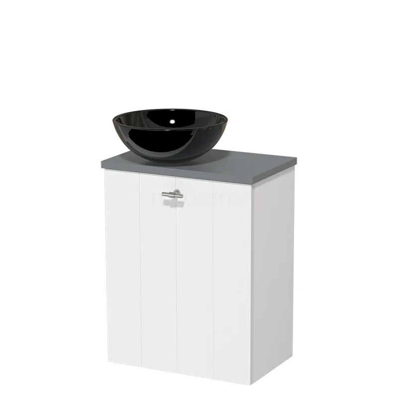 WC-Möbel mit Aufsatzwaschbecken | 41 cm Matt Weiß Lamellenfront Hochglanz Schwarz Keramik-Aufsatzwaschbecken Mittelgrau Platte