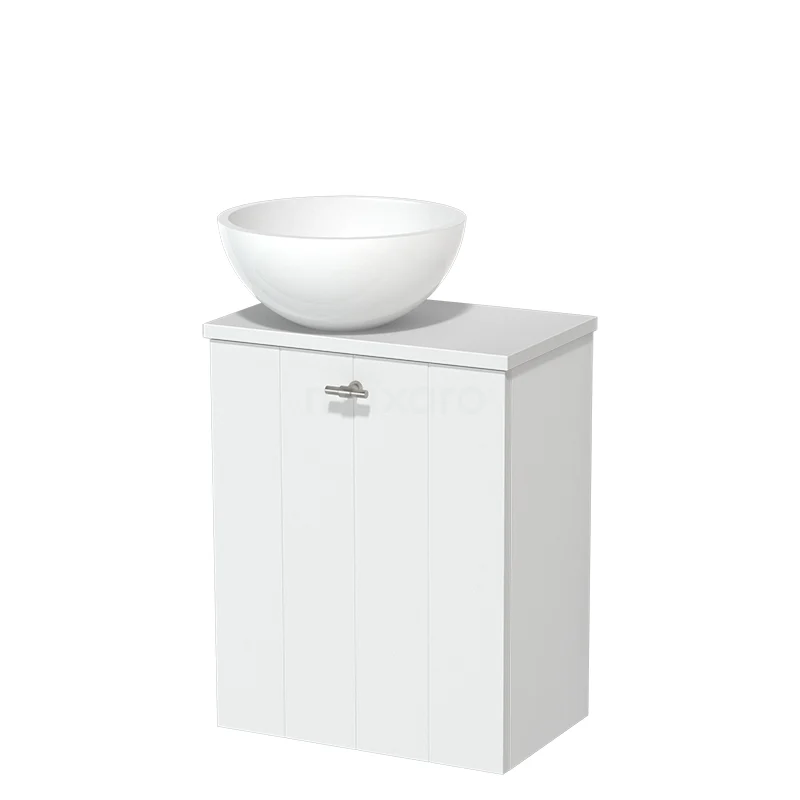 WC-Möbel mit Aufsatzwaschbecken | 41 cm Matt Weiß Lamellenfront Hochglanz Weiß Mineralguss Aufsatzwaschbecken Matt Weiß Platte