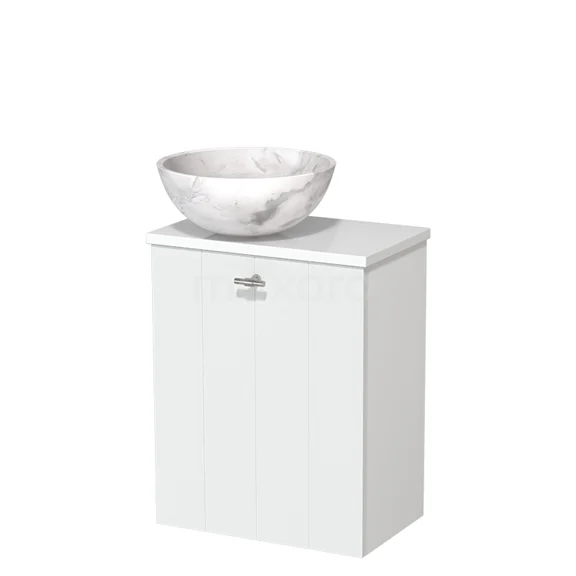 WC-Möbel mit Aufsatzwaschbecken | 41 cm Matt Weiß Lamellenfront Weißer Marmor Naturstein Aufsatzwaschbecken Hochglanz Weiß
