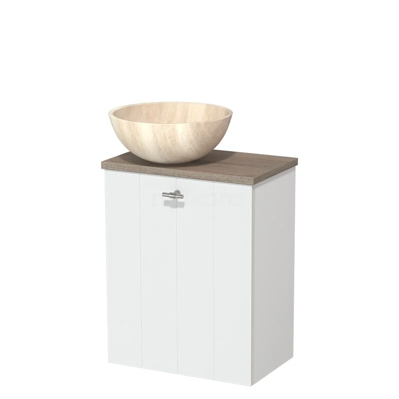 WC-Möbel mit Aufsatzwaschbecken | 41 cm Matt Weiß Laminierte Front Travertin Naturstein Aufsatzwaschbecken Eiche Platte