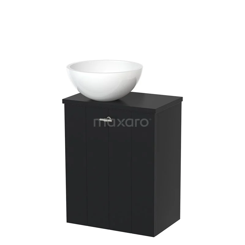 WC-Möbel mit Aufsatzwaschbecken | 41 cm Mattschwarze Lamellenfront Hochglanz Weiß Mineralguss-Aufsatzwaschbecken Mattschwarze Platte