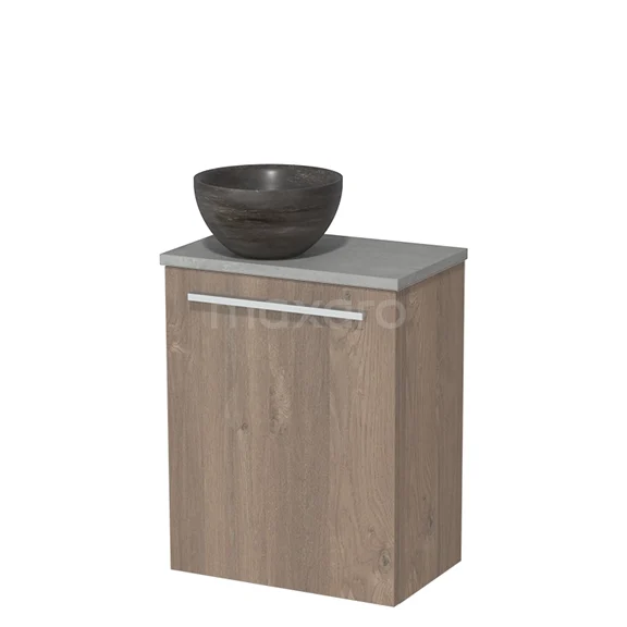 WC-Möbel mit Aufsatzwaschbecken | 41 cm mittelbraune Eiche glatte Front Blaustein Naturstein Aufsatzwaschbecken hellgrauer Beton Platte