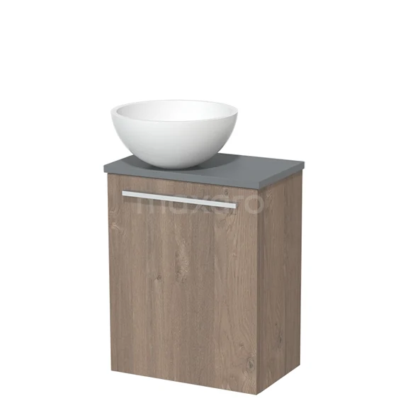 WC-Möbel mit Aufsatzwaschbecken | 41 cm Mittelbraune Eiche Glatte Front Matt Weiß Aufsatzwaschbecken Mittelgraue Platte