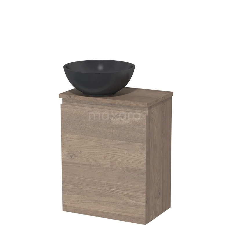 WC-Möbel mit Aufsatzwaschbecken | 41 cm Mittelbraune Eiche Grifflose Front Matt Schwarz Quarz Aufsatzwaschbecken Mittelbraune Eiche Platte