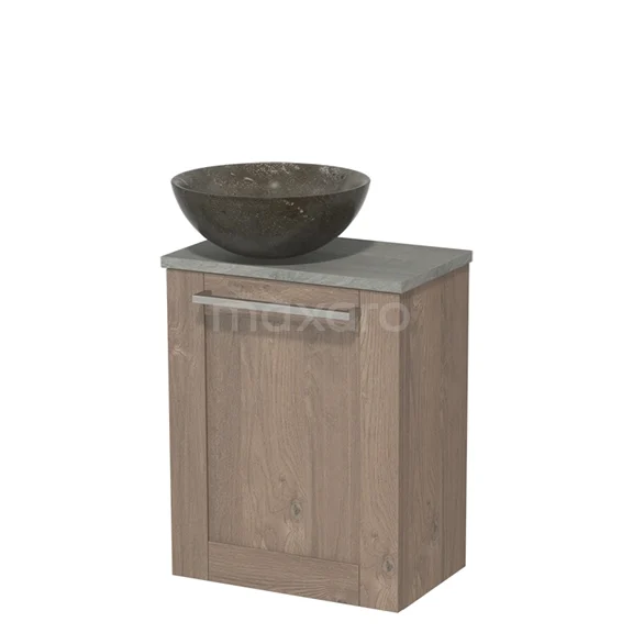 WC-Möbel mit Aufsatzwaschbecken | 41 cm mittelbraune Eiche Rahmenfront Blaustein Naturstein Aufsatzwaschbecken graue Eiche