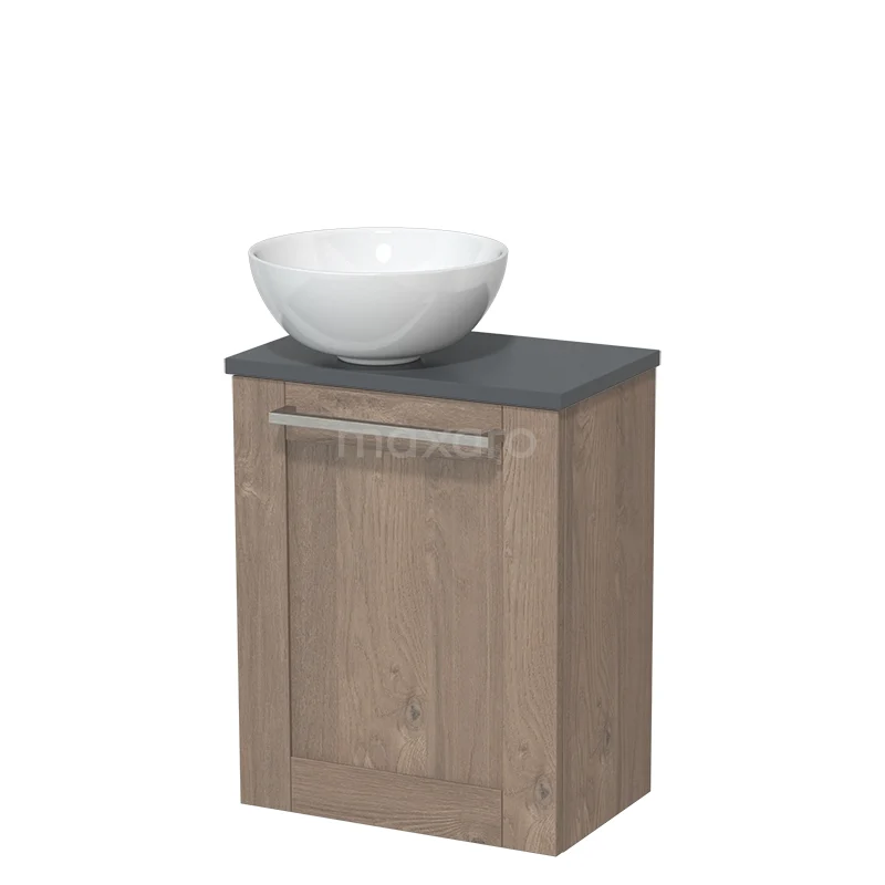 WC-Möbel mit Aufsatzwaschbecken | 41 cm Mittelbraune Eiche Rahmenfront Hochglanz Weiß Keramik-Aufsatzwaschbecken Dunkelgrau Platte