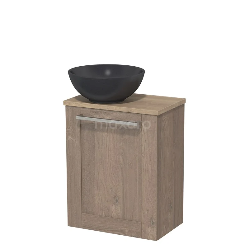 WC-Möbel mit Aufsatzwaschbecken | 41 cm Mittelbraune Eiche Rahmenfront Matt Schwarz Quarz Aufsatzwaschbecken Hellbraune Eiche Platte