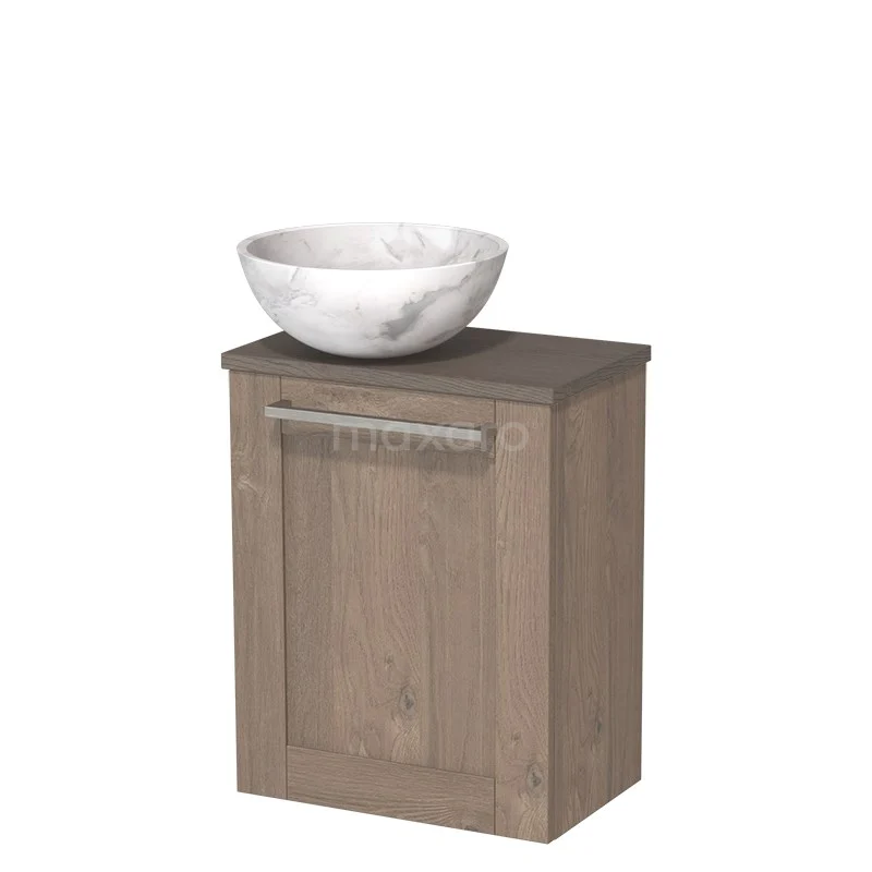 WC-Möbel mit Aufsatzwaschbecken | 41 cm Mittelbraune Eiche Rahmenfront Weißer Marmor Naturstein Aufsatzwaschbecken Dunkelbraune Eiche Platte