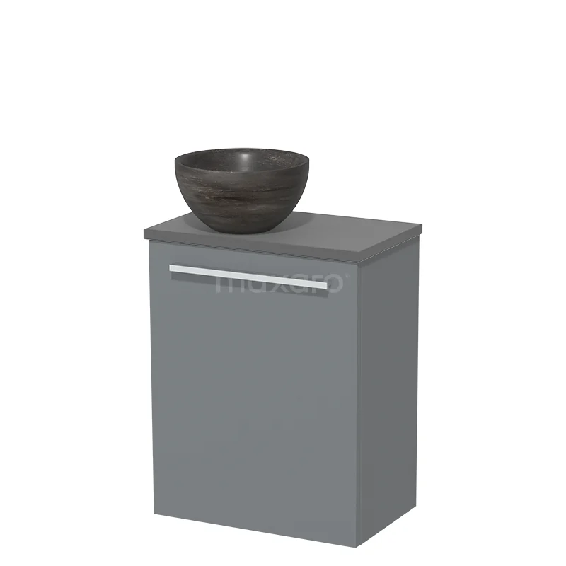 WC-Möbel mit Aufsatzwaschbecken | 41 cm Mittelgrau Front glatte Front Blaustein Naturstein Aufsatzwaschbecken Mittelgrau Platte